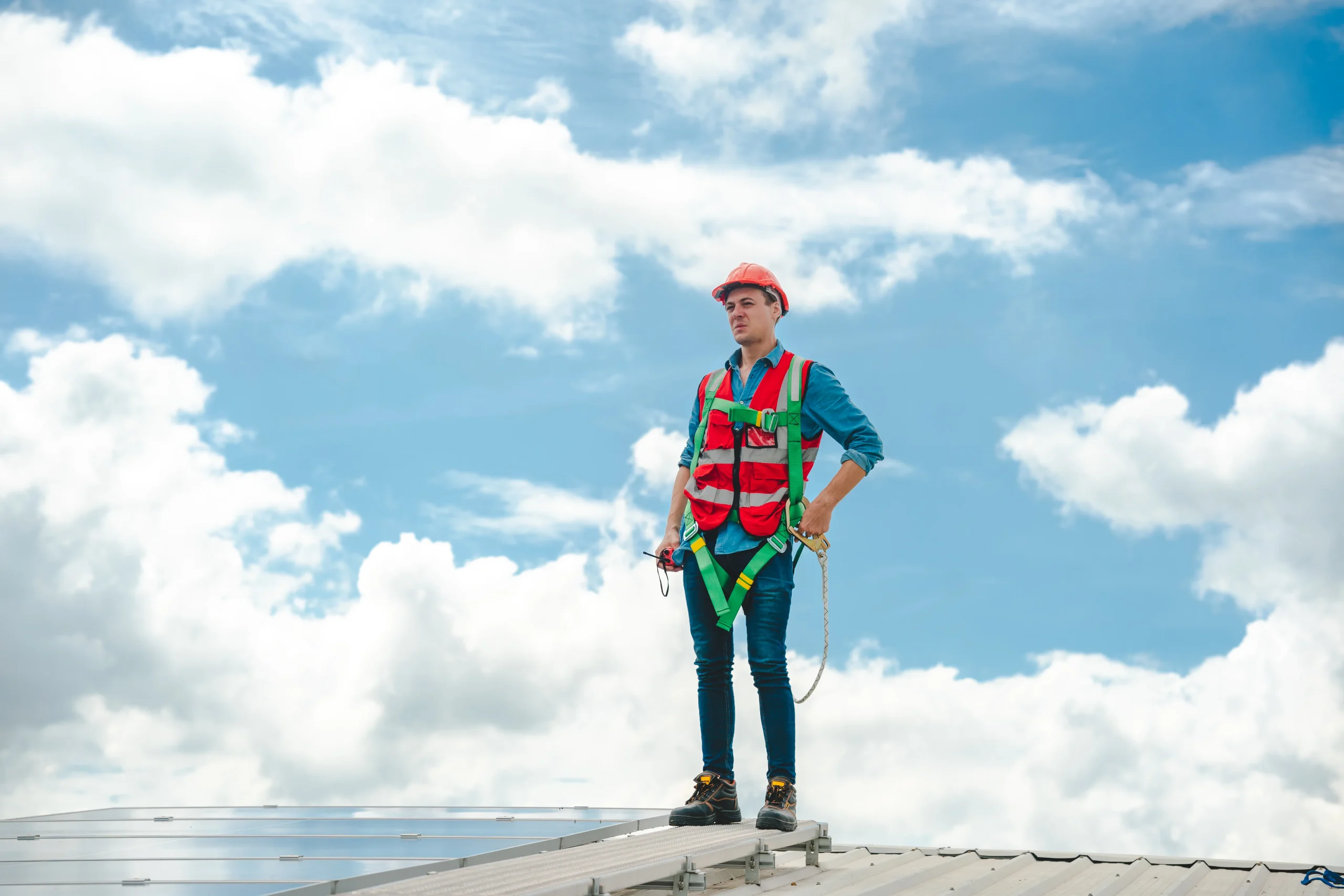 Pracuję z asekuracją, zgodnie z BHP – zarówno przy obiektach prywatnych, jak i firmowych.
